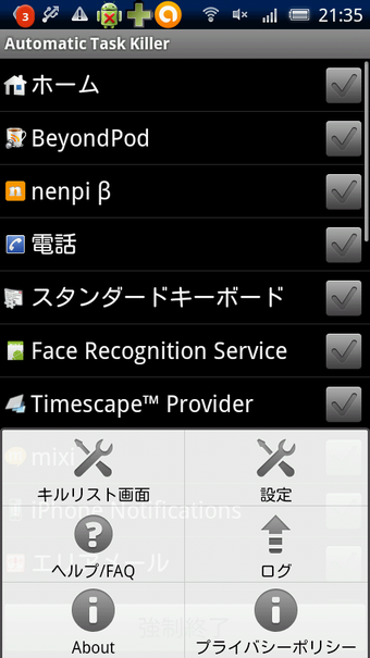 Automatic Task Killerは、スリープ状態になったときに自動的にタスクを終了しいつでもAndroidを軽快に保てるタスク管理アプリです。